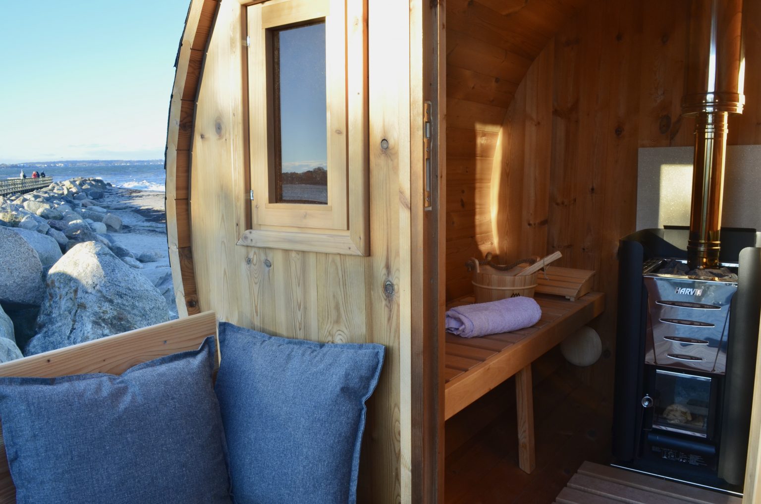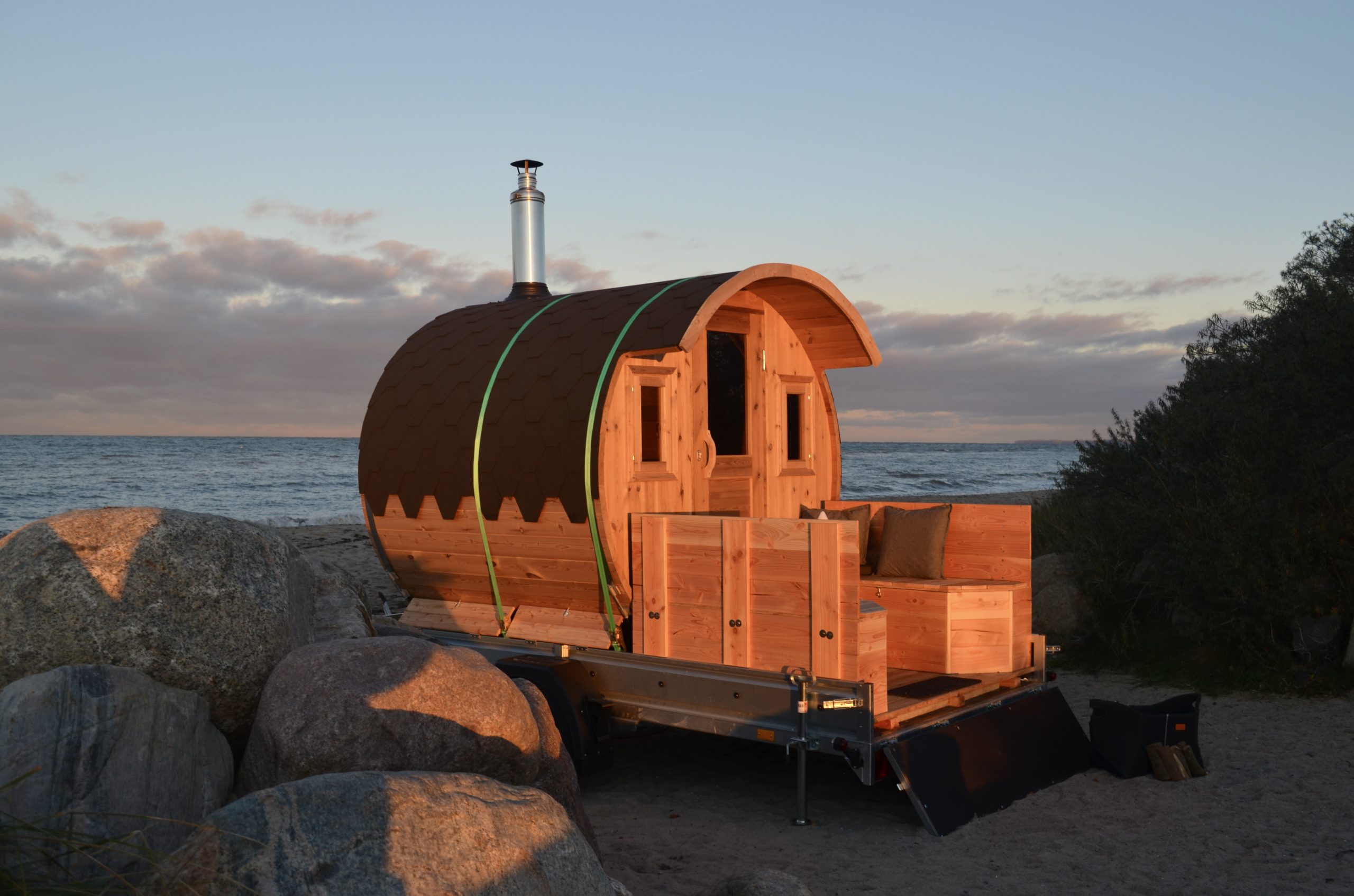 Unsere mobile Holzsauna ist perfekt für ihr privates Sauna Erlebnis entlang der Lübecker Bucht. Bis zu 4 Personen können bei 70-100°C in ruhiger und entspannter Atmosphäre schwitzen. Zwischen den Saunagängen entspannen Sie auf der integrierten Lounge-Terrasse. Die Sauna und Terrasse sind fest auf einem Anhänger verbaut, so können Sie die Sauna flexibel überall abstellen. Ob zu Hause im Garten, der Ferienwohnung, am Strand, See oder an Ihrem persönlichem Lieblingsplatz, der Kreativität sind keine Grenzen gesetzt wo Sie saunieren gehen…